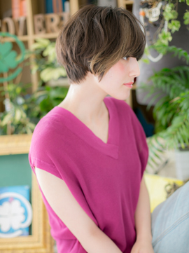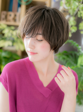 トップにボリュームを持たせスタイルアップ効果を。目の上ギリギリの斜めバングや厚めバングで目元を印象つけます。耳かけや前下がりでアシンメトリーに仕上げてクール&スタイリッシュに!(メイク担当:北浦和店 近藤)