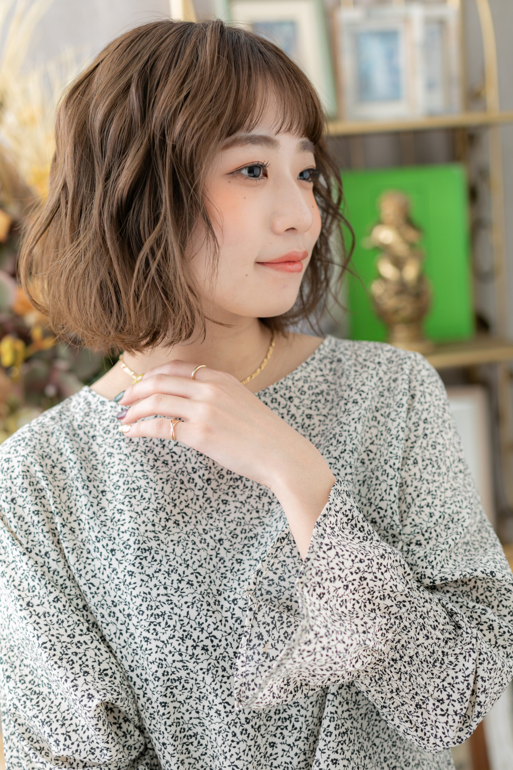 【3】 波巻きくせ毛風春パーマ小顔エアリーミディ(ミディアム部門)