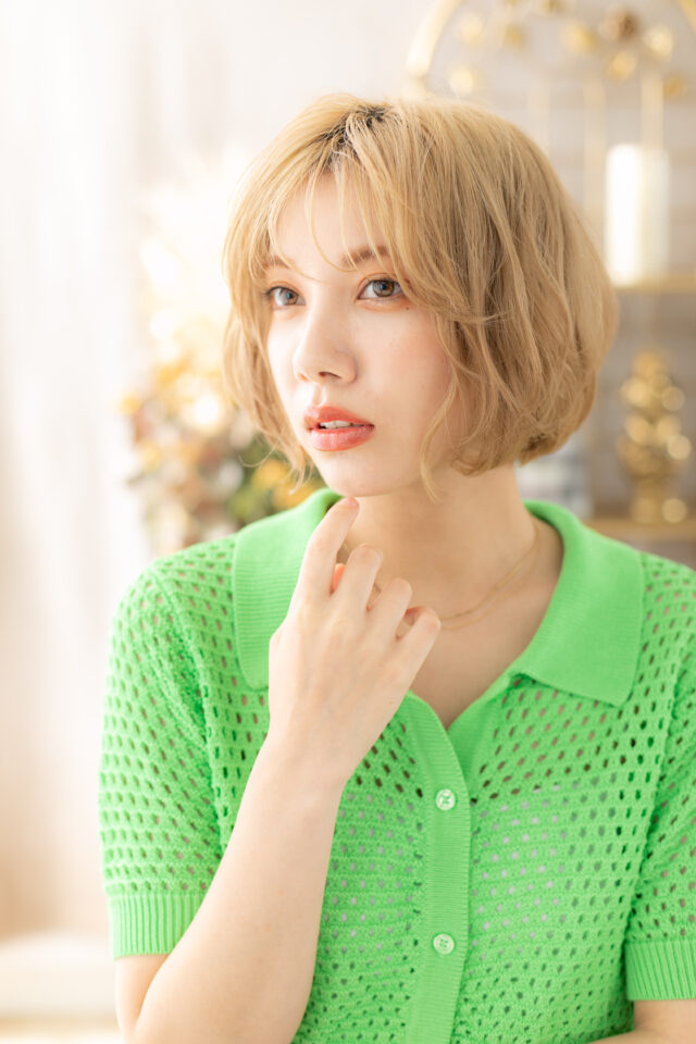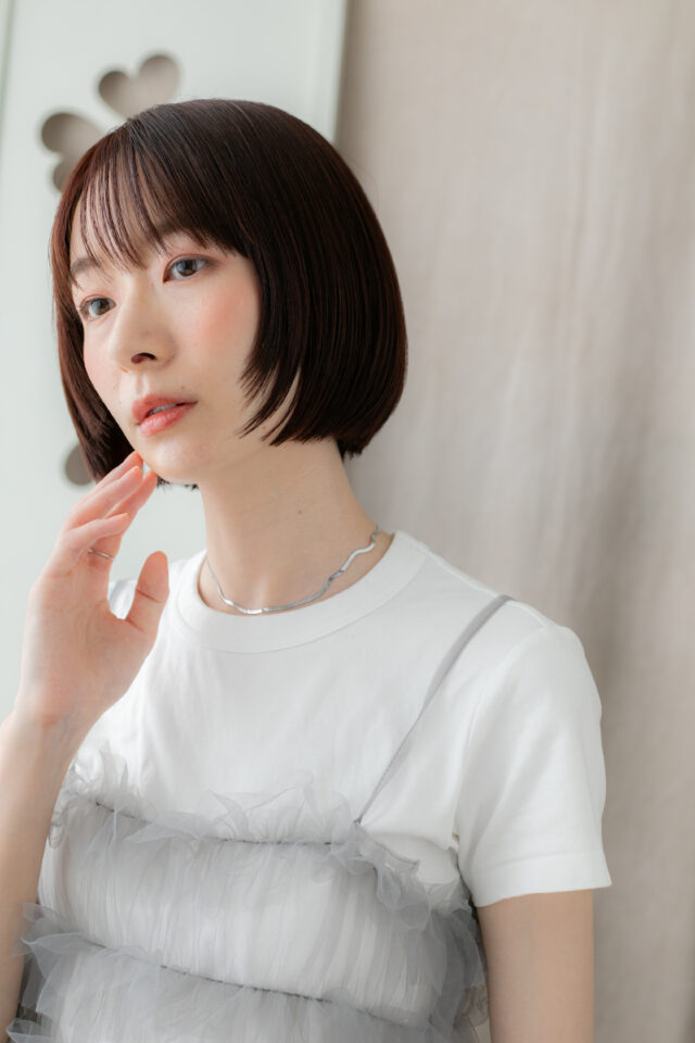 カットで毛量調整をしデジタルパーマをかければ、ナチュラルな軽やかさが出て一気に涼し気なスタイルに。