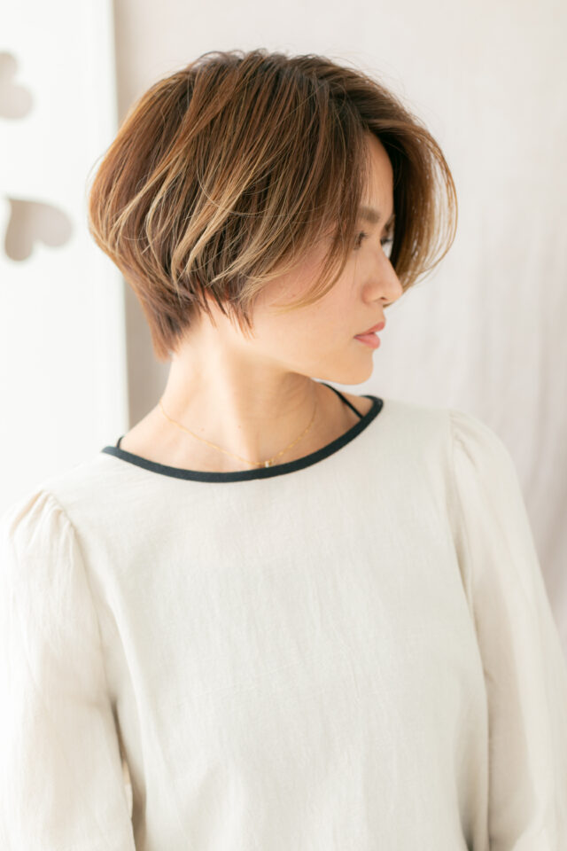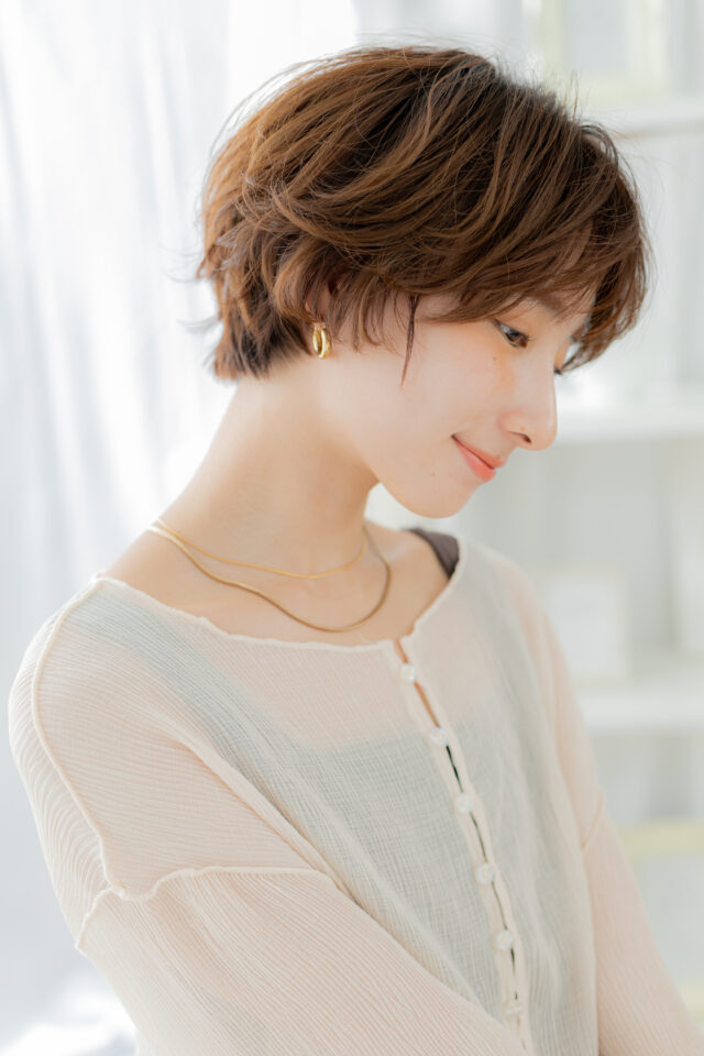 ▼軽やかさ×女性らしさを叶えたいなら【ふわっと丸みのあるハンサムショート】