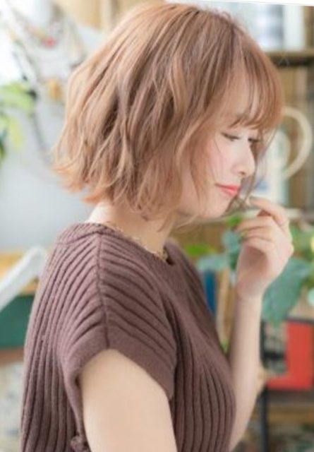 シースルーな前髪に、透明感あるベージュ系カラー、柔らかな外はねパーマで、今流行りを全て取り入れたボブ!