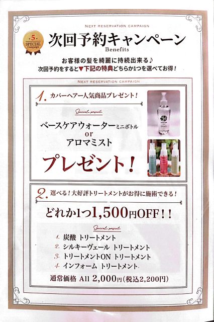 - お得に綺麗を保てる次回予約キャンペーン♪【北浦和】