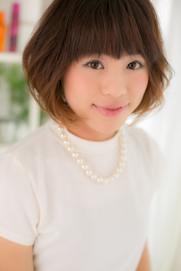前下がりのグラデーションボブに,毛先に空気感を出すようにスライドカット。ダメージに配慮した低温デジタルパーマと,カラーは8レベルのブラウンベースに,毛先13レベルの,グラデーションカラー。似合わせカットに,ボブパーマ,厚めバングでナチュラルボブ
