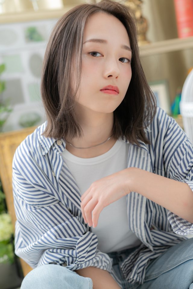 インナーカラー/バレイヤージュ/ハイトーンカラー/切りっぱなしボブ/シースルーバング/大人ハイライト/韓国風/透明感/ボブ/ウェットヘア/マッシュボブ/イヤリングカラー/エアリーミディ/ナチュラル/ヒアルロン酸カラーは白髪にも対応可/20代/30代/40代