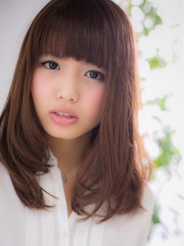 ピュアなイメージの定番セミロングは毛先の丸みがポイント。毛流れが丸く内側に向かうよう、計算してカットします。髪質次第ではパーマや矯正をプラスして。