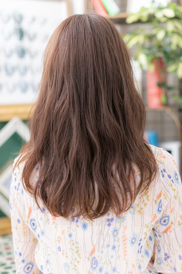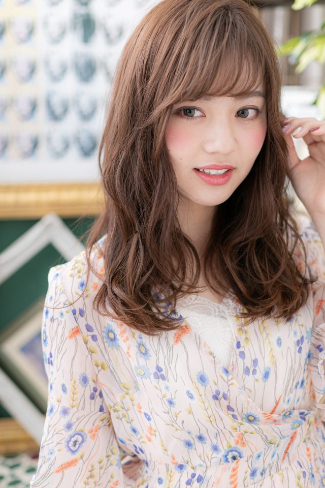 透け感シースルーバングで目力UPしたくせ毛風ロングのヘアスタイル。トリートメントしたようなカラーリングで髪の悩み解決!人気のカラーや思い通りの茶色もおすすめ!大人女子のファッション度UP。30代・40代にも◎(メイク担当:川口店成田)