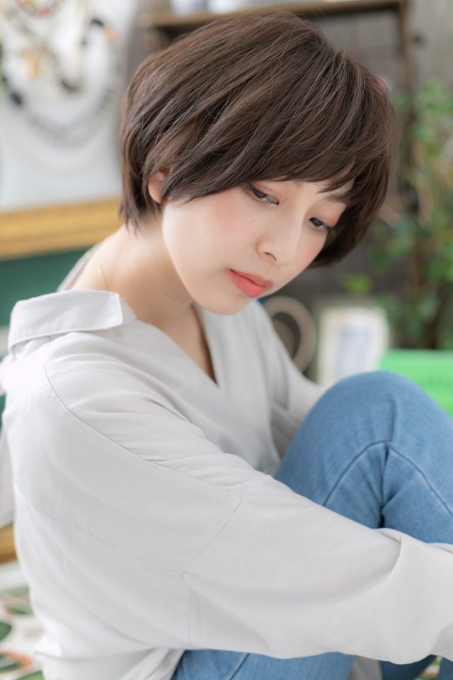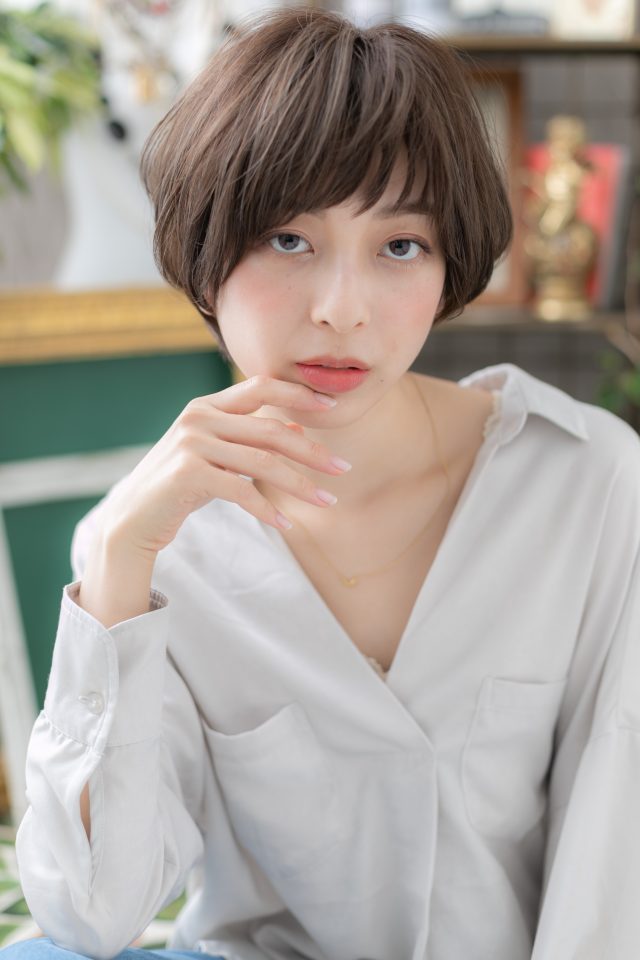 サイドの前下がりラインで輪郭カバーした小顔見せハンサムショー。トリートメントしたようなカラーリングで髪の毛の悩みも解決!人気のカラーやアッシュもおすすめ!ショートは前髪ありも前髪なしもヘアアレンジするのもおすすめなヘアスタイルです。
