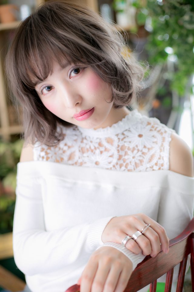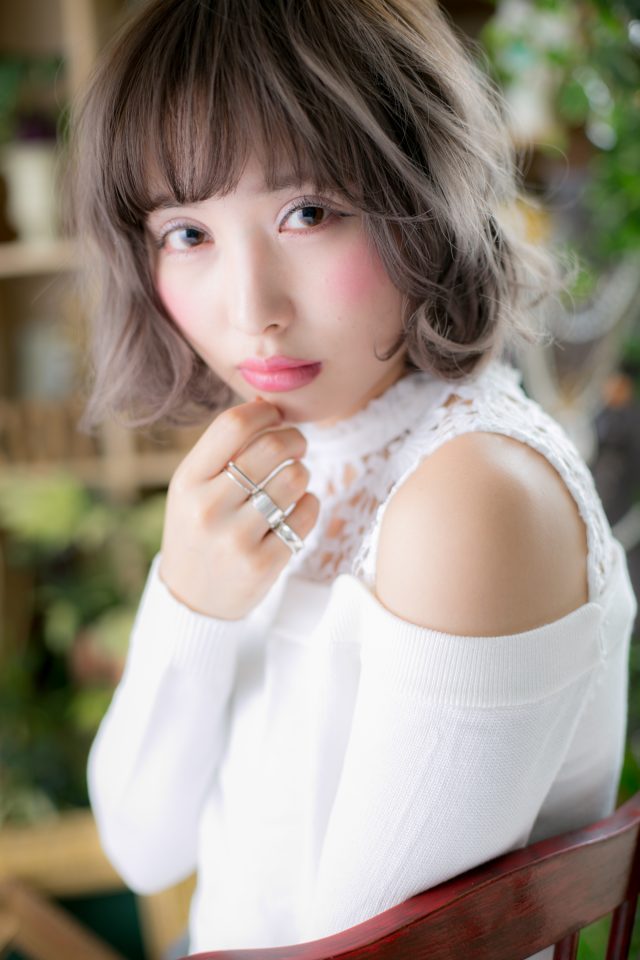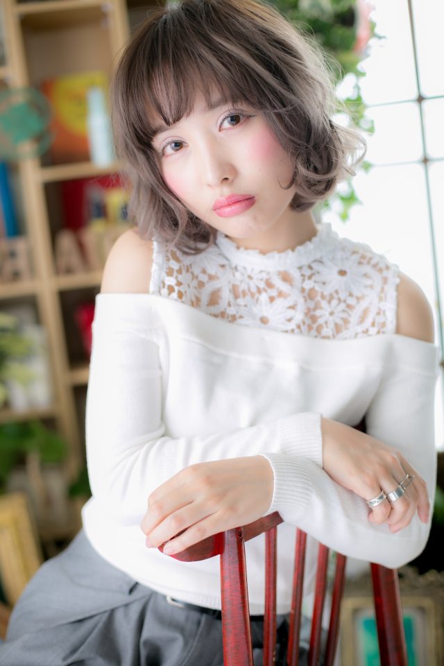 ナチュラルボブからイメチェンしたい方にオススメのスパイシーな大人ボブ。フリンジバングにくせ毛風カールをオン。無造作なラブふわミディは、グレージュやアッシュ系のハイトーンで周囲と差をつけて!耳かけしても◎
