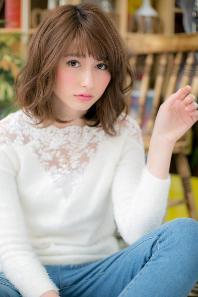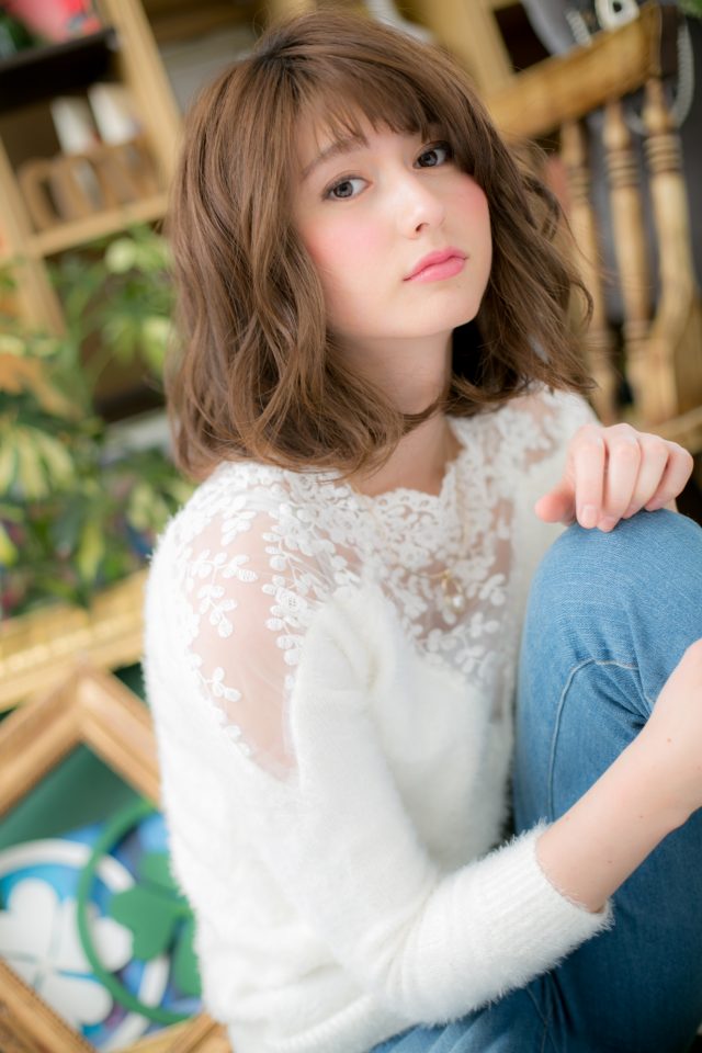 レースのようなやわふわカールがとびきりガーリーな愛されミディ。フリンジバングと合わせて旬顔にアップデート。前髪が伸びてきたら、センターパートでクールビューティにしたり、耳かけしたタンバルモリもトレンド!