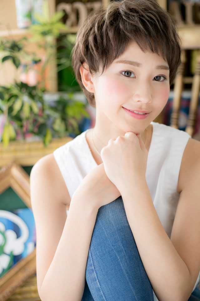 斜めバングの女らしさショート