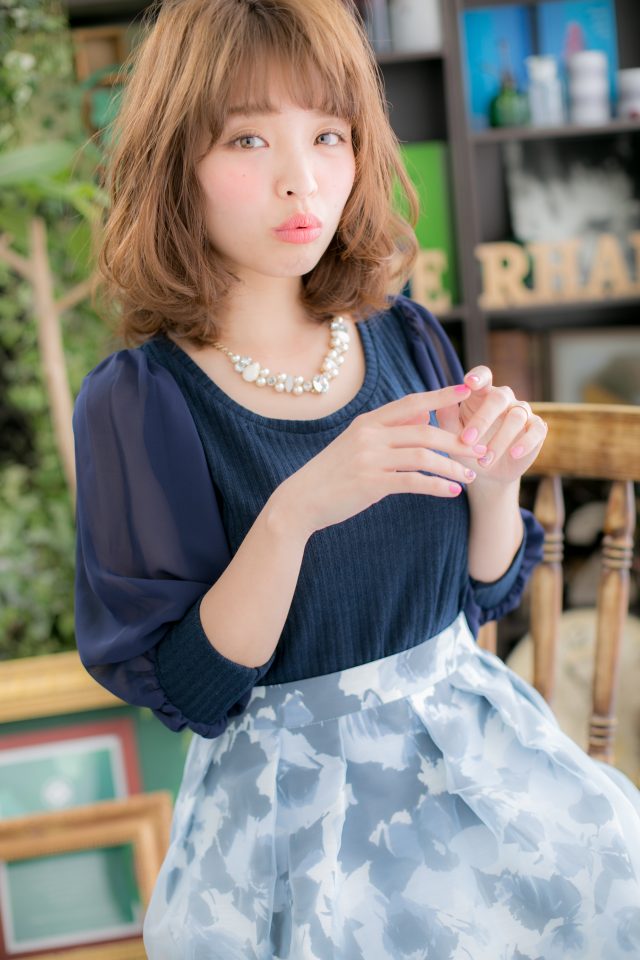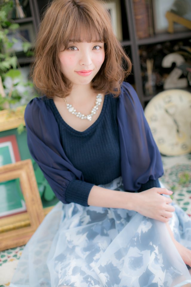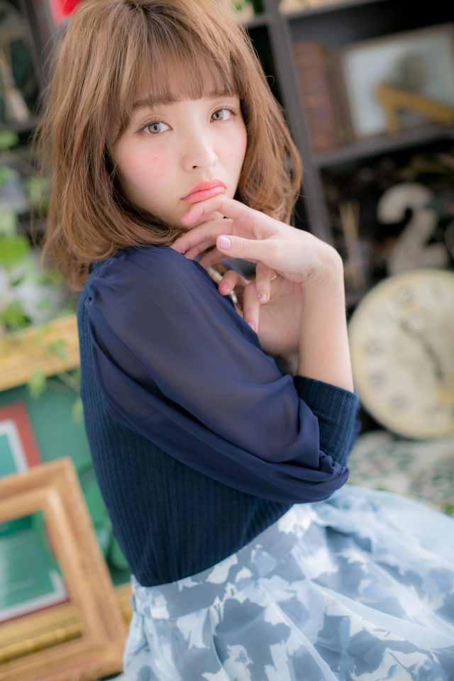 たっぷりの空気感を含んだエアリーふわミディ。前下がりで小顔見せ☆くせ毛風のリラクシーなラフカールで抜け感を♪無造作でもこなれ感ある大人女子風に。厚めバングや斜めバングも個性的。耳かけも大人かわいい。