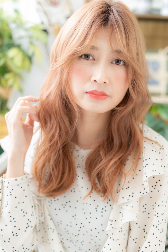 くせ毛風エアリーカールのグラマラスロングで大人女子のコーデも完成。外国人風ピンクグラデーションカラーやとリーメントしたようなカラーリングもおすすめ。耳かけやアシンメトリーなヘアアレンジもGOOD。30代・40代にも◎(メイク担当:北浦和店 棟方)