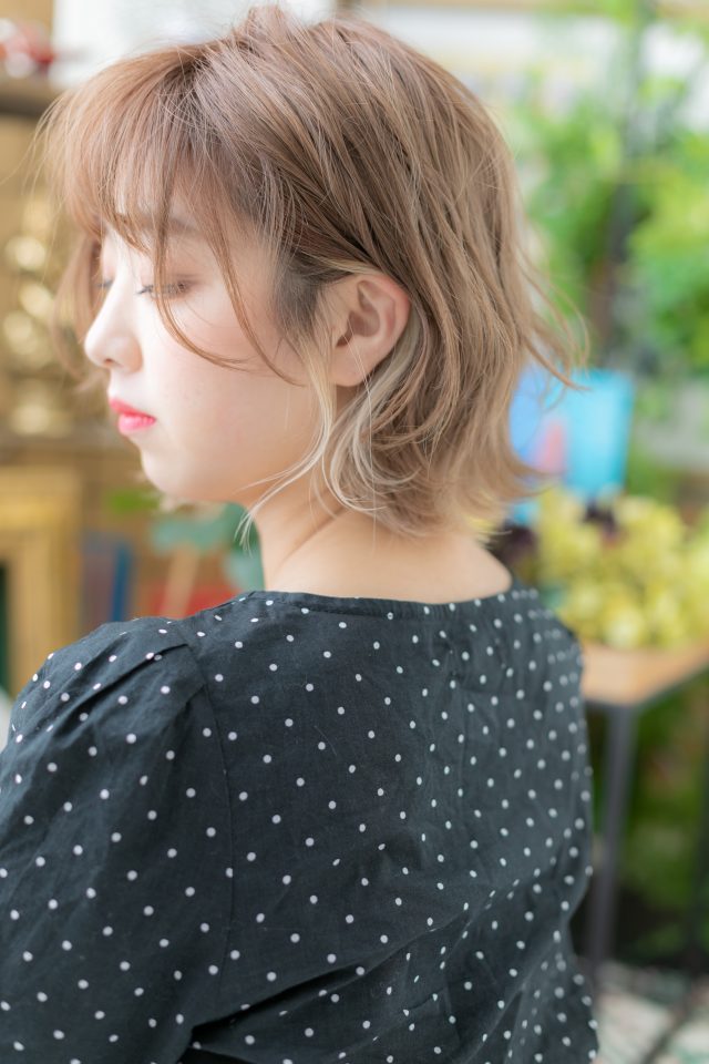 大人かわいいハイトーンくせ毛風ボブウルフ