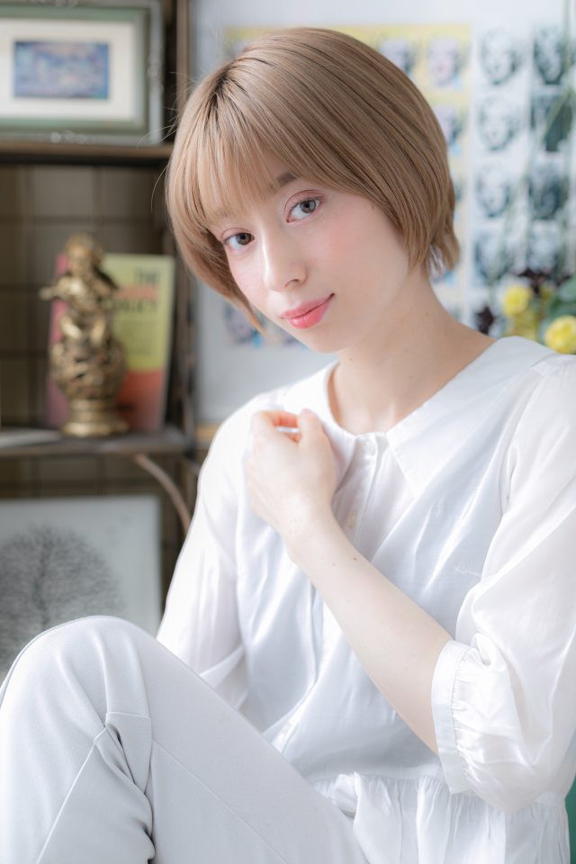 。前下がりで小顔。ナチュラルボブやフェミニンボブ、大人ボブや前下がりボブ、ミニボブやウルフも人気。耳かけやくせ毛風ゆるふわミディも大人かわいい。(メイク担当:北浦和店 棟方)