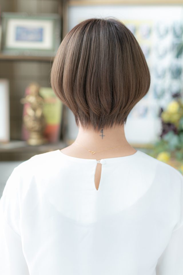 インナーカラー/ハイトーン/切りっぱなしボブ/シースルーバング/ミニボブ/大人ハイライト/韓国風/ナチュラルマッシュショート/ショートマッシュ/丸みショート/かきあげ前髪/くびれショート/ナチュラル/ヒアルロン酸カラーは白髪に対応可/20代/30代/40代