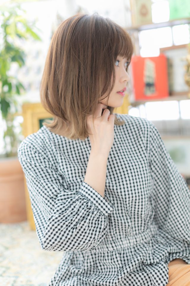 バレイヤージュ/ハイトーンカラー/切りっぱなしボブ/ゆるふわ/韓国風/ボブ/ウェットヘア/斜めバング/厚めバング/マッシュボブ/ウルフ/イヤリングカラー/丸みショート/かきあげ前髪/くびれショート/ナチュラル/20代/30代/40代