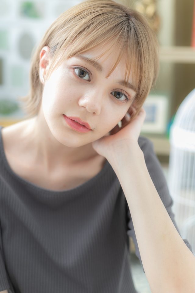 外国人風ミルクティアッシュ小顔ウルフボブ