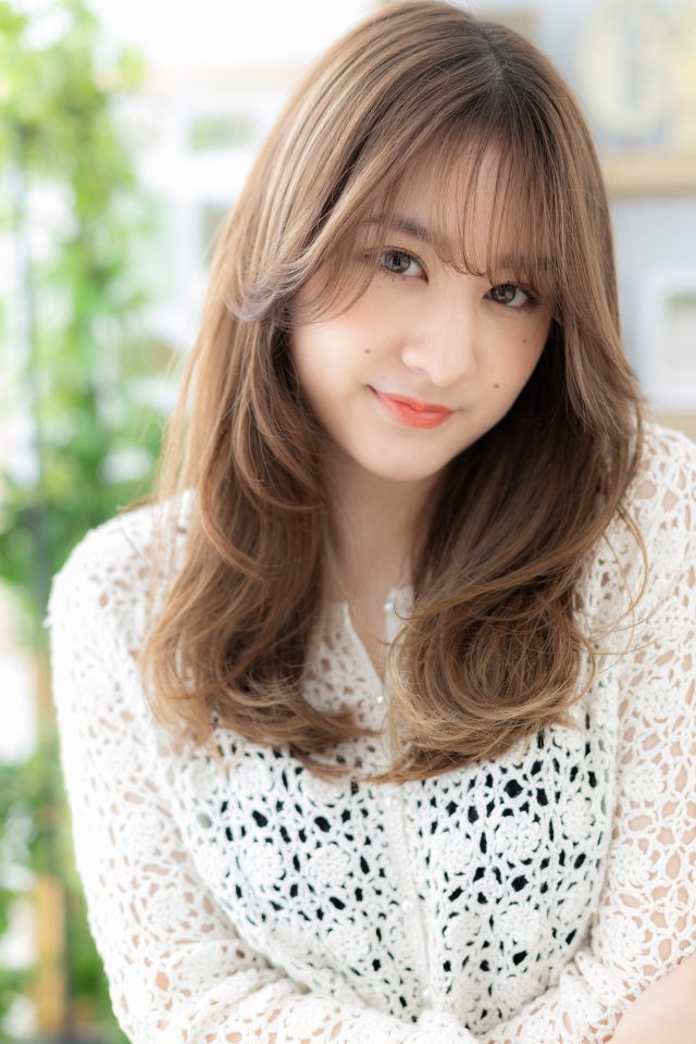 斜めバング厚めバング、シースルーバングかきあげ前髪が大人かわいい。ナチュラルボブフェミニンボブ、大人ボブ前下がりボブで小顔。くせ毛風ゆるふわミディや耳かけ前下がりウルフも◎(メイク担当:北浦和店 成田)