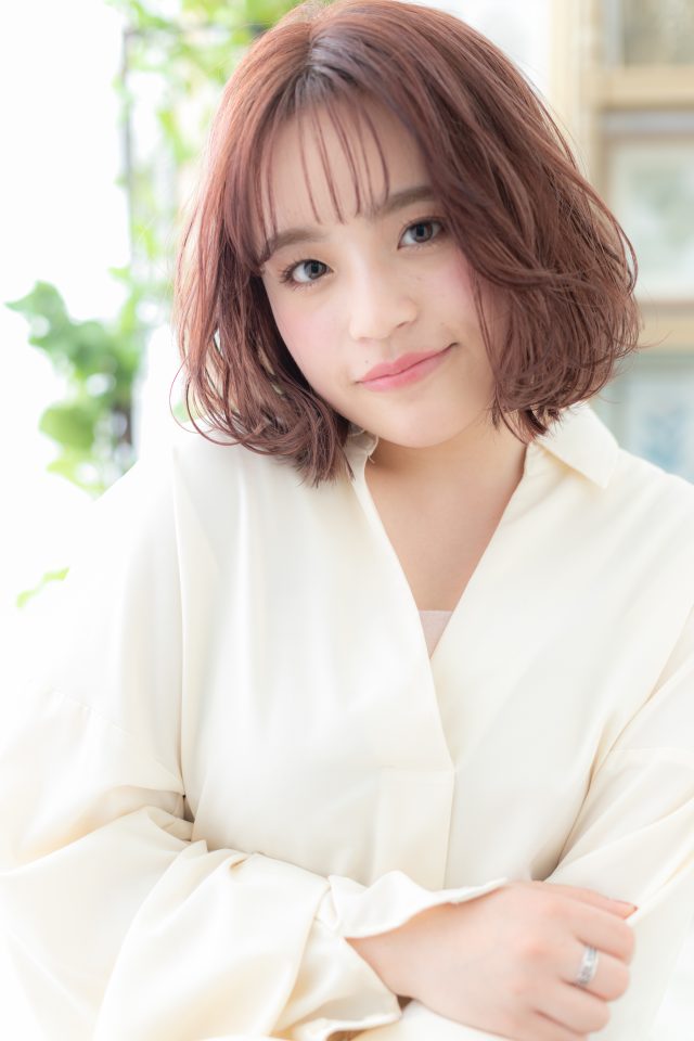 ナチュラルボブフェミニンボブ、大人ボブ前下がりボブ、切りっぱなしボブが大人かわいい。斜めバング厚めバングシースルーバングで小顔。くせ毛風ゆるふわミディや耳かけ前下がりウルフが◎(メイク担当:北浦和店 成田)