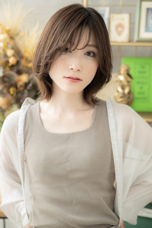 斜めバング厚めバング、かきあげ前髪シースルーバングで小顔。くせ毛風ゆるふわミディや耳かけ前下がりウルフも大人かわいい。大人ボブフェミニンボブ、ナチュラルボブ切りっぱなしボブも人気(メイク担当:北浦和店成田)