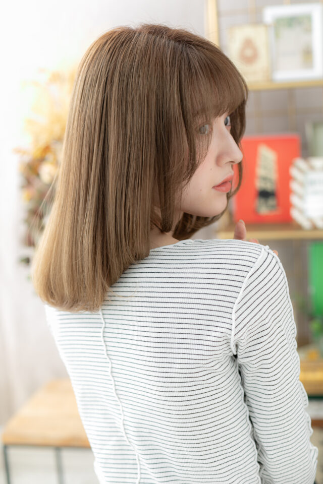 ミルクティーアッシュツヤ髪ワンカールロブ
