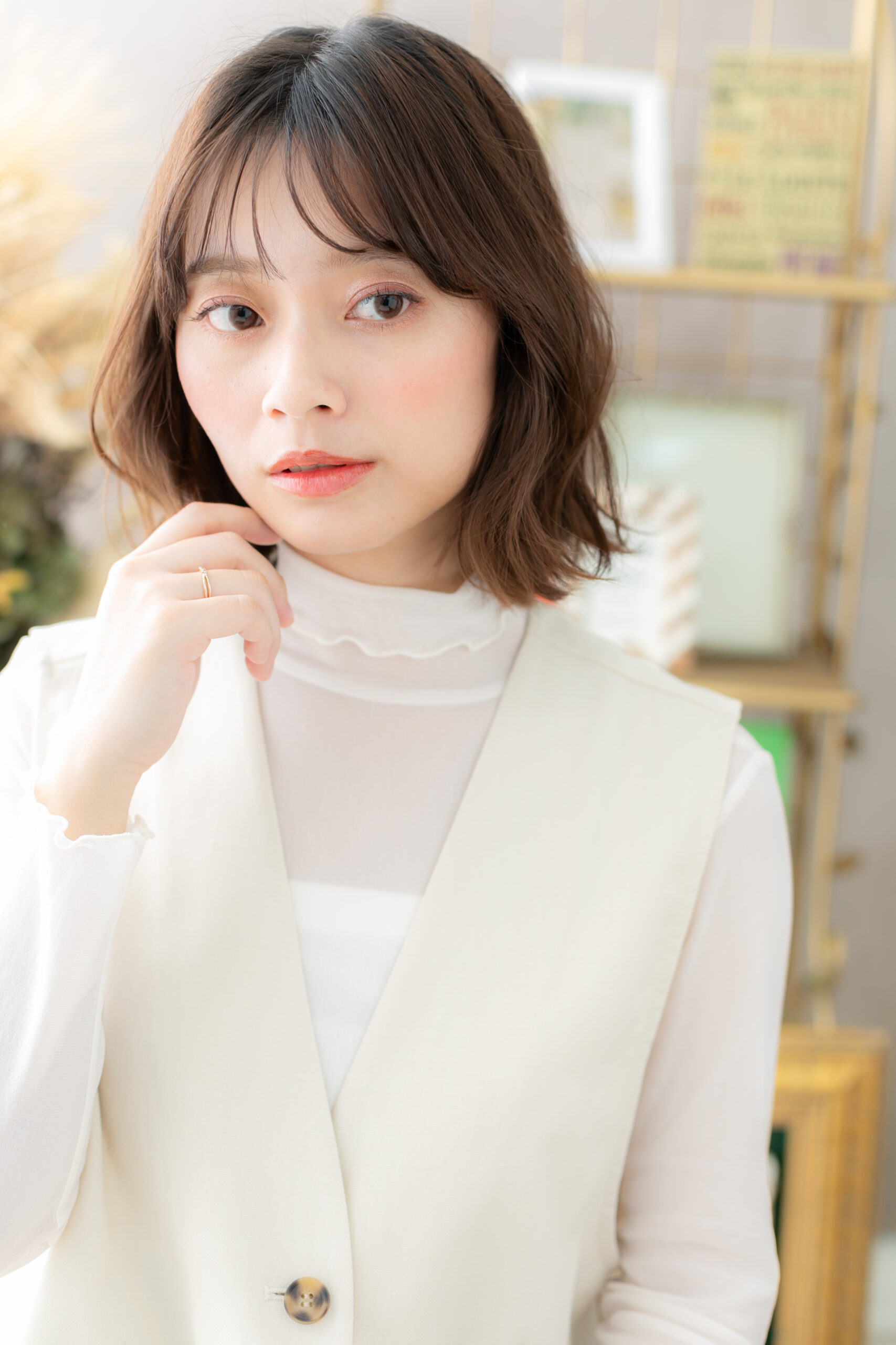 ハイトーンカラーやインナーカラー、バレイヤージュで外国人風。マッシュボブ切りっぱなしボブ、フェミニンボブ前下がりボブからイメチェン。かきあげ前髪シースルーバング、斜めバングで小顔。(メイク担当:川口店岩渕)