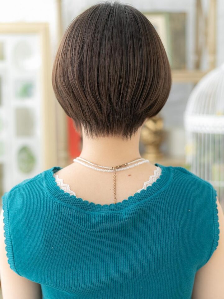 ココアブラウン小顔美肌ストレート丸みミニボブ20代30代