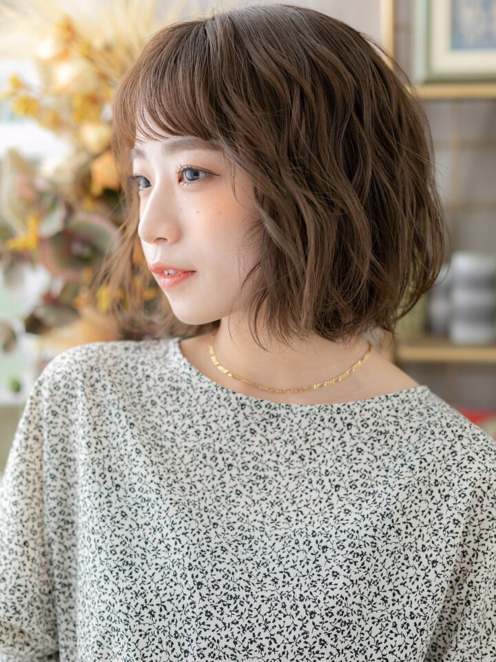 大人可愛いゆるふわオン眉ボブ20代30代