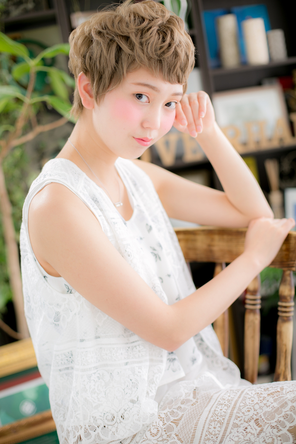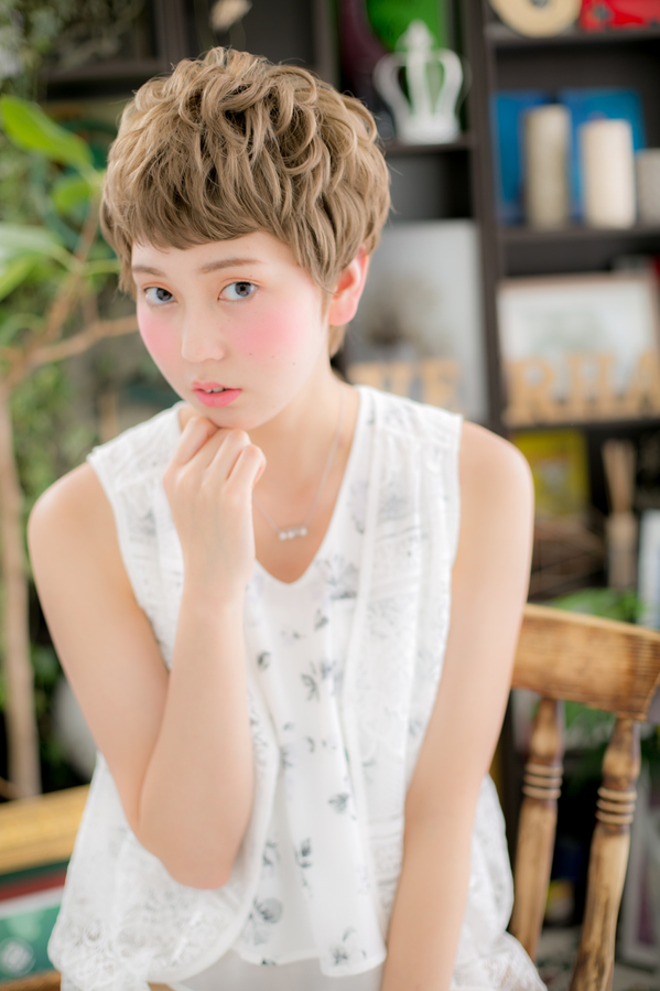 ハイトーンで個性的なエアリーショート。ベビーバングとワンカールでオシャレ度UP!斜めバングや厚めバングで目力強調したり、耳かけも大人かわいい。ガーリーショートやボーイッシュショートのイメチェンもOK。