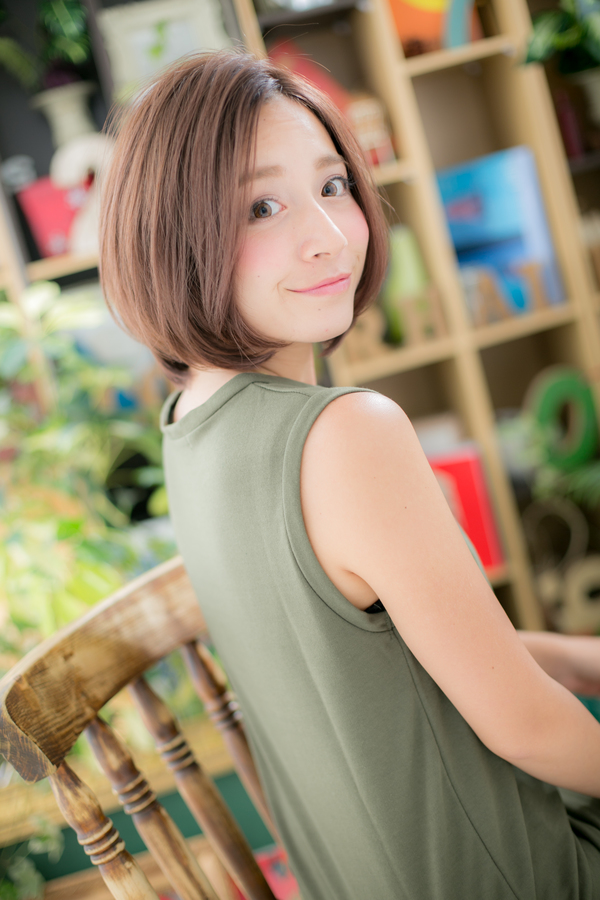 フェイスラインをカバーして小顔も狙えるナチュラルなシンプルボブ。少しピンクかかったナチュラルカラーでアクセントを♪飽きのこない人気スタイルです。