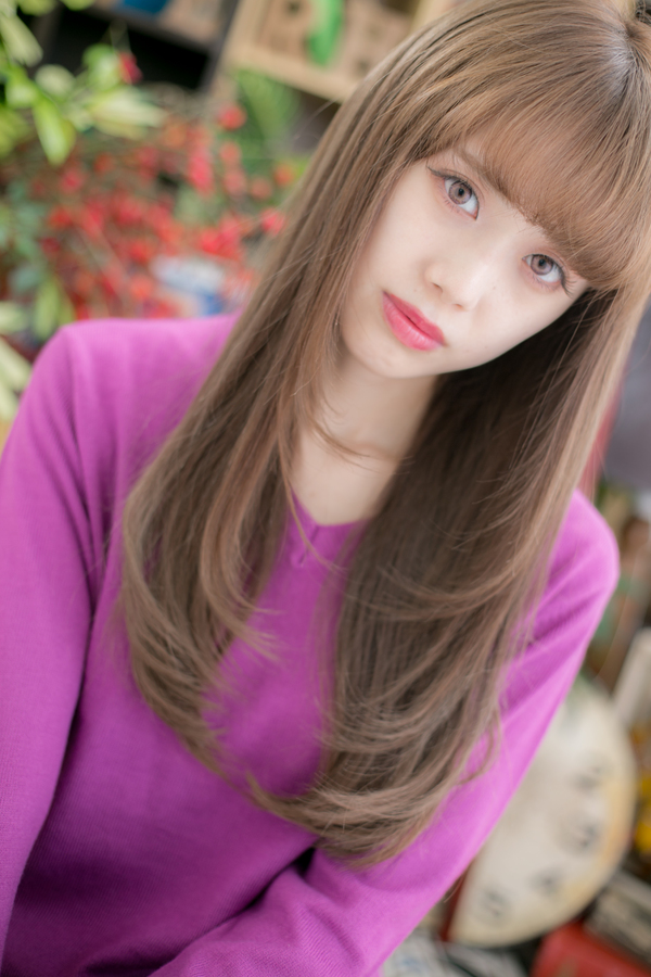 重たくなりがちなストレートロングを、シャギーとパッと目を引くベージュカラーで華やかに。憧れのストレートロングはツヤがポイントなので縮毛矯正をかけていれば簡単にキープできます♪