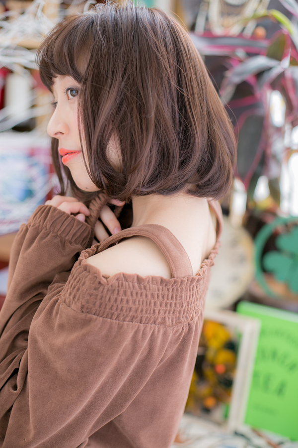 短めの前髪と、束感あるウェーブが印象的なミディアムスタイルです。カラーでアクセントをつけたり、質感で遊んだり楽しめます☆