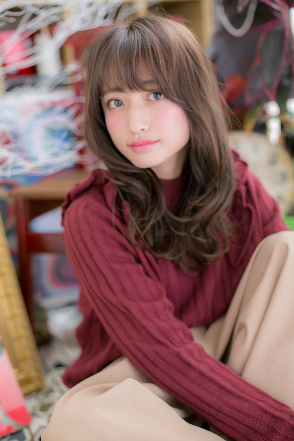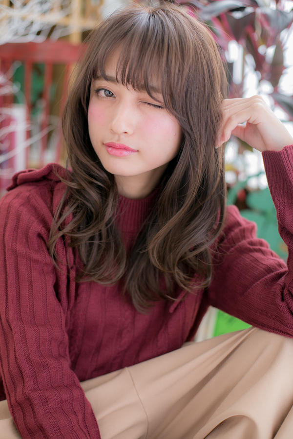 暗めのアッシュ系カラーだけど、透明感のある色味なので艶っぽい印象に☆デジタルパーマなのでコテで巻いたような思い通りのカールを簡単に出せます。