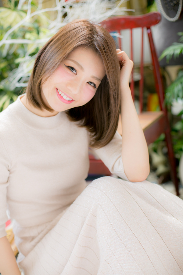 ツヤ感と透明感がポイントのナチュラルなミディアムスタイル。フェミニンな抜け感もプラスされる明るめのカラーで女性らしい印象に☆