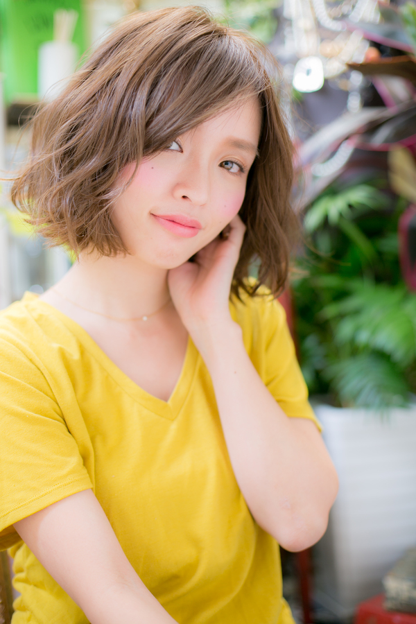 ちょっぴりドライなくせ毛風カールでふわっとしたAラインシルエット。ほつれウェーブでアンニュイに仕上げて大人っぽさとかわいらしさのある印象に。
