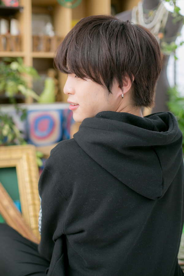 毛流れをデザインの主役にした、落ち着いた雰囲気のナチュラルショート。自然におろした長めバングで目元を印象つけて。黒髪で爽やかに。優し気で親近感を持たれるので、男女問わず好感度もバッチリ。学生さんにも◎