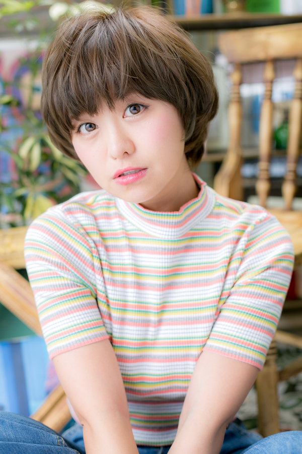 スッキリコンパクトフォルムのマッシュショート。小頭に見せて、スタイルアップ効果を狙い亜ます。ワンカールでやわらかな印象に。ワイドバングと合わせて目力UP効果も。可愛く見せてくれるガーリーショートです。