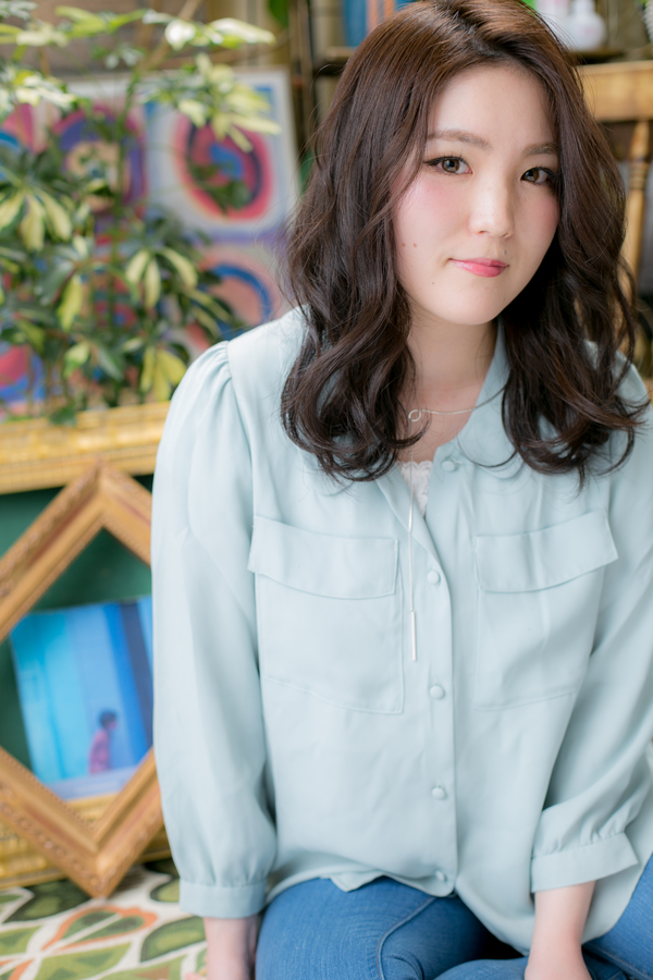 ジェルタイプのスタイリング剤orオイルで、ツヤ感をだしてスタイリングを。フェミニンな色気を醸しつつ、暗髪で落ち着いた印象なので、OLさんやミセスの方にもオススメです。