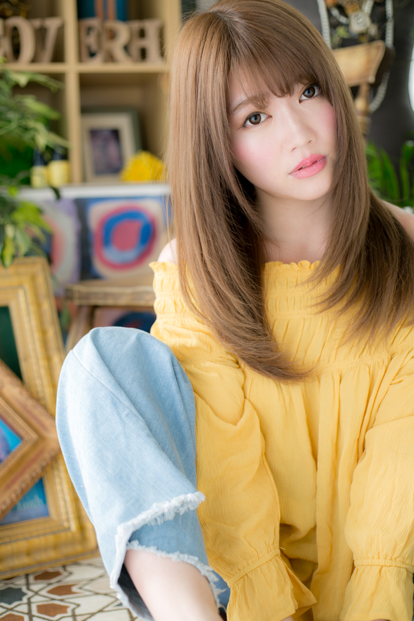 斜めバングとツヤ感ストレートで、透明感とまとまり感のある、甘くやわらかなハニーヘアに♪目の上ギリギリの長めの斜めバングで目力強調!小悪魔風の可愛さを引き出します。姫カットでアクセントをつけても◎