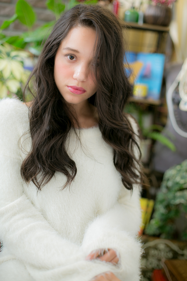 根元を少し立ち上げたかきあげバングと、ゆるやかに流れ落ちる大き目ウェーブの動きが色っぽい、大人女子のためのエレガントロング。アッシュ系で肌色を綺麗に見せて、美人顔の完成です♪