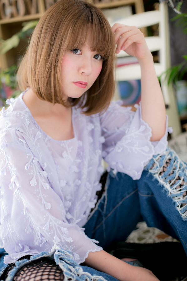 顔周りを包み込む前下がりラインで輪郭をカバーして小顔見せ。厚めバング&斜めバングで目元を強調して美人度UP!ナチュラルミディは、グラデーションカラーで表情豊かに個性的ガーリー☆(メイク担当:川口店 成田)