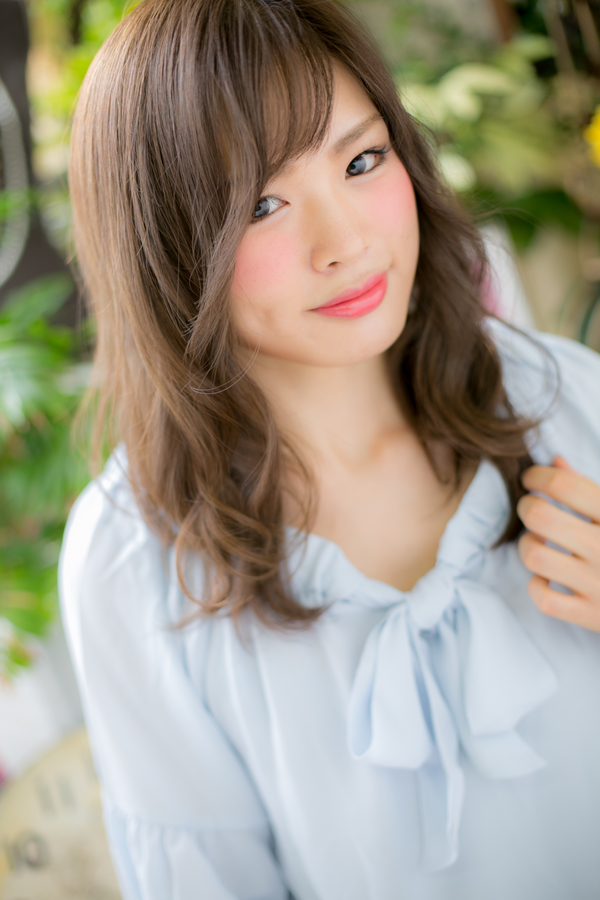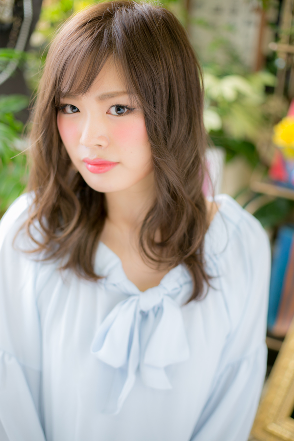 くせ毛風カールが大人かわいいふわミディ。前下がりボブやフェミニンボブ、大人ボブやナチュラルボブからの伸ばしかけにオススメ。斜めバングや厚めバングで目力UP!前下がりフォルムで小顔に。センターパートもGOOD!