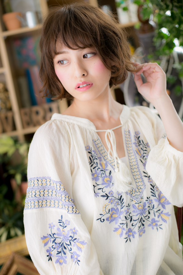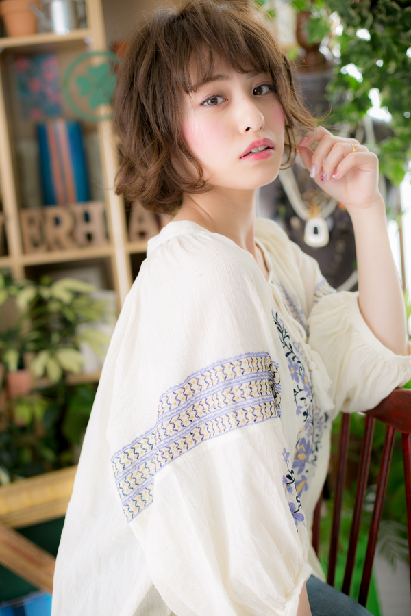 顔周りを包みこむレイヤーと表面のくせ毛風ふんわり感が大人かわいいガーリーボブ。軽くやわらかな質感なので、黒髪や暗髪もお似合い。モードシックに仕上がります。ベージュカラーやグラデーションカラーもグラマラス!