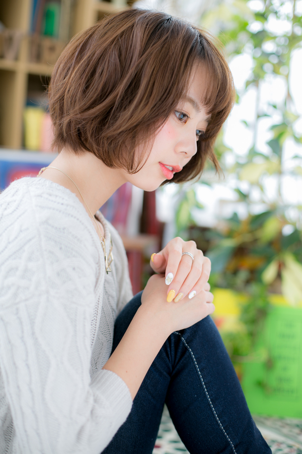 前下がりボブは、くせ毛風カールをつけてエアリーな抜け感を出すのもGOOD。ふわミディやセミディへの伸ばしかけにも◎無造作にかきあげて色っぽくしたり、大人かわいい耳かけもOK。黒髪やマーメイドアッシュで旬顔。