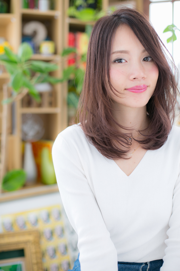 ノーバングでこなれ感を演出したワンカールセミディのヘアスタイル。ピンク系カラーでフェミニンに仕上げて大人女子のコーデを完成。前下がりで小顔にメイク。耳かけしたりラフなヘアアレンジもGOOD。トリートメントしたようなカラーリングで髪の毛の悩みも解決!人気のカラーやアッシュグレー、ブリーチなしもおすすめ☆30代・40代にも◎(メイク担当:川口店 成田)