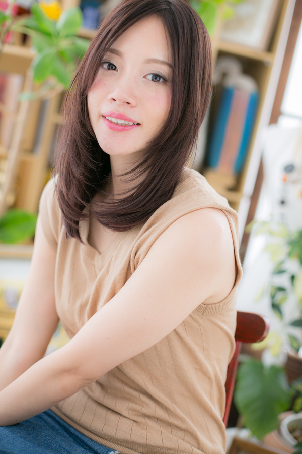 縦のラインを強調して小顔を狙った前下がりのワンカールストレート。ノーバングでハンサムな印象。大人女子のファッション度UP!モード風ワンレンやくせ毛風パーマのふわミディも抜け感GOOD。耳かけも大人かわいい。トリートメントしたようなカラーリングで髪の毛の悩みも解決!人気のカラーやアッシュグレー、ブリーチなしもおすすめ!30代・40代にも◎(メイク担当:川口店 成田)