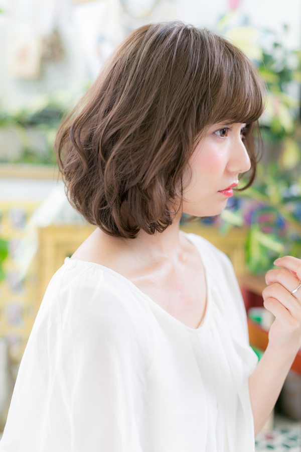 顔周りを包み込むようなゆるやかなくせ毛風ウェーブは小顔見せで大人女子のファッション度UP。耳横にワンカールを持たせたひし形シルエットで美人顔にヘアアレンジもOK。斜めバングや厚めバングで目力UPのヘアスタイル。ミディアムヘアを際立たせる暗めのグラデーションやベージュで髪の毛の悩みも解決!30代・40代にもおすすめ!