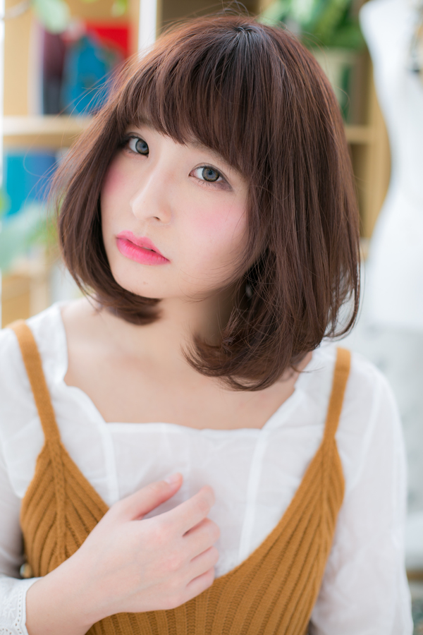 厚めバングや斜めバングで目力強調して大人女子のファッション度UP!耳かけしたりくせ毛風カールのフェミニンボブでラブガーリーな愛されヘアスタイルに。前下がりボブやナチュラルボブ、大人ボブからのヘアアレンジにオススメ。ミディアムヘアを際立たせるグラデーションで髪の毛の悩みも解決!30代・40代にも◎(メイク担当:川口店 成田)