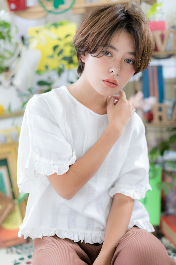 360度どこから見ても綺麗なシルエットを追及しました。ワンカールパーマをかけて簡単スタイリング。耳かけしたり前下がりの小顔シルで大人女子のコーデを完成。トレンドの丸みショート。トリートメントしたようなカラーリングで髪の毛の悩みも解決!人気のカラーやアッシュグレー、グレージュ。ブリーチなしもおすすめ。(メイク担当:COVERHAIRGROUP中田)