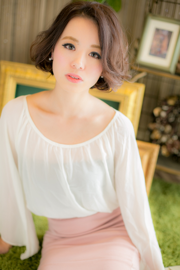大人かわいいナチュラルボブに柔かいカールをつけて,フェアリーにもグラマラスにも見える大人ボブスタイルに!センターパート,斜めバング,厚めバングと,前髪で印象もガラッと変わります☆重めスタイルだけど明るめのカラーとカットで空気感もでます。簡単スタイリングもうれしい。